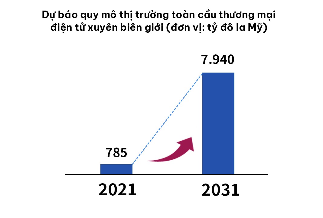 Tính đến năm 2020, số lượng cơ sở của các doanh nghiệp ở nước ngoài đã tăng khoảng hai đến ba lần. Ngoài ra, quy mô của thị trường toàn cầu thương mại điện tử xuyên biên giới cũng tăng trưởng nhanh chóng. Cụ thể, thị trường toàn cầu thương mại điện tử xuyên biên giới tạo ra doanh thu 784,6 tỷ USD trong năm 2021, dự kiến đến năm 2031 sẽ đạt 7.938,2 tỷ USD, trong đó thị trường châu Á chiếm thị phần cao nhất, ước tính chiếm khoảng 2/5 tổng thị trường.