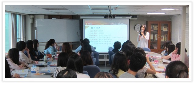 參訪團抵達後,隨即由行銷部謝協理致歡迎詞,除了請業務部蔣協理簡單介紹翻譯產業的生態、還請人資部柯專員介紹獎學金活動。