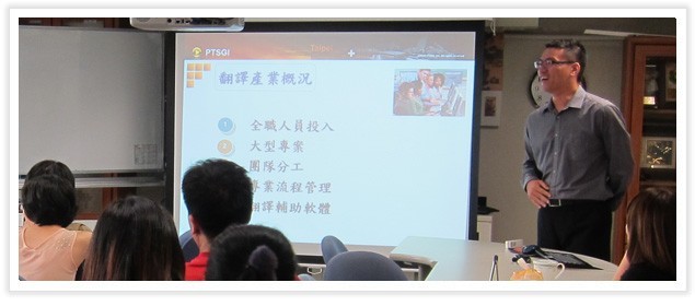 老師們抵達後,隨即由行銷部謝協理致詞歡迎。接著由業務部陳協理介紹翻譯產業的生態、翻譯師的養成 …等主題。