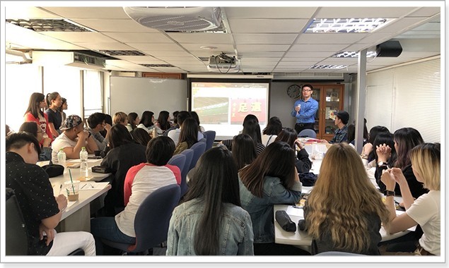 行銷部謝協理以PTSGI形象影片與活潑問答為開場,「你們怎麼知道統一數位翻譯?」、「你們知道統一數位翻譯幾年了嗎?」,創立至今52年的統一數位翻譯股份有限公司,已翻譯過134種語言,並提供24小時的服務。這次參訪學生中,已有自行接翻譯案的優秀人才,對於未來發展議題相當關心。業務部的陳協理透過PTSGI的介紹,引導出翻譯產業的概況、前景,與職涯規劃。