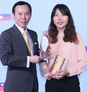 首先,身為外籍留學生很榮幸能夠獲獎,也非常感謝主辦單位及各位評審老師。其實,我去年參加時沒有獲獎,因此我這次重新挑戰,結果這次終於能夠獲獎特別高興。無論做什麼,一定要以百折不撓的精神去對待所有的事,才能夠得到自己想要的結果。這次是翻譯中翻日的遊戲,我從來沒有接觸過的領域。中日翻譯是我非常喜歡的領域,中文也是我的第二外語,之所以會選擇翻譯遊戲領域也是因為自己的興趣。雖然翻譯是件須花費不少時間,但也是件很有趣的事,透過思考和仔細考量後,選擇最適合的詞彙和句型,將原文轉換成另一種語言確實的表達出來,這個過程非常有趣。再次非常感謝統一數位翻譯公司給我這麼好的機會。我未來也要繼續挑戰翻譯不同的領域。
