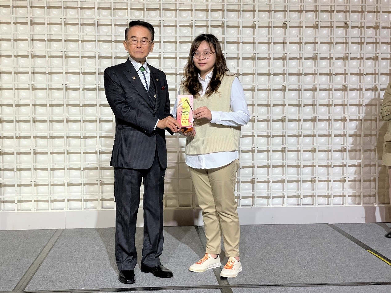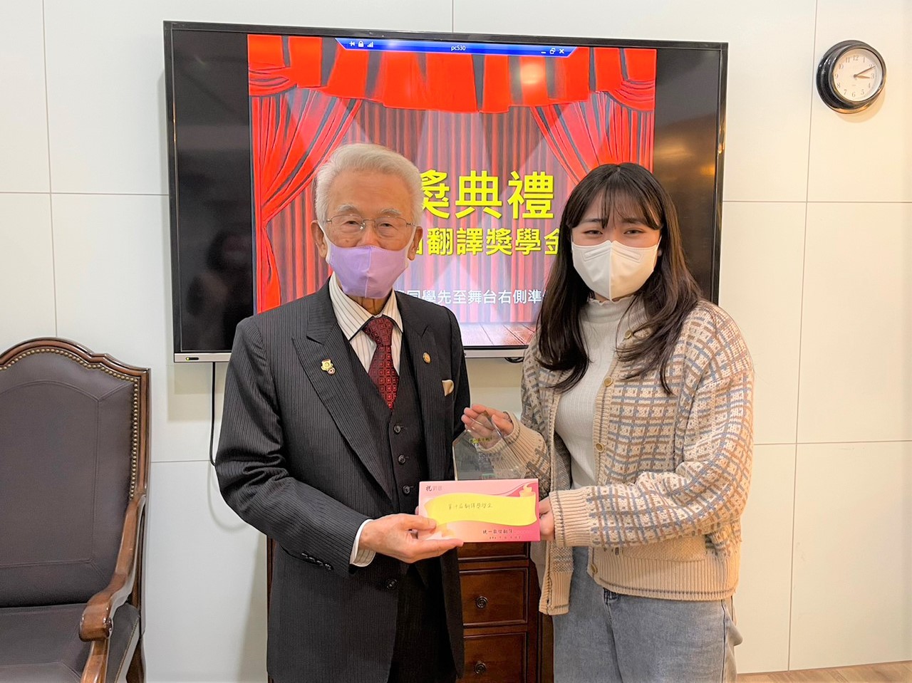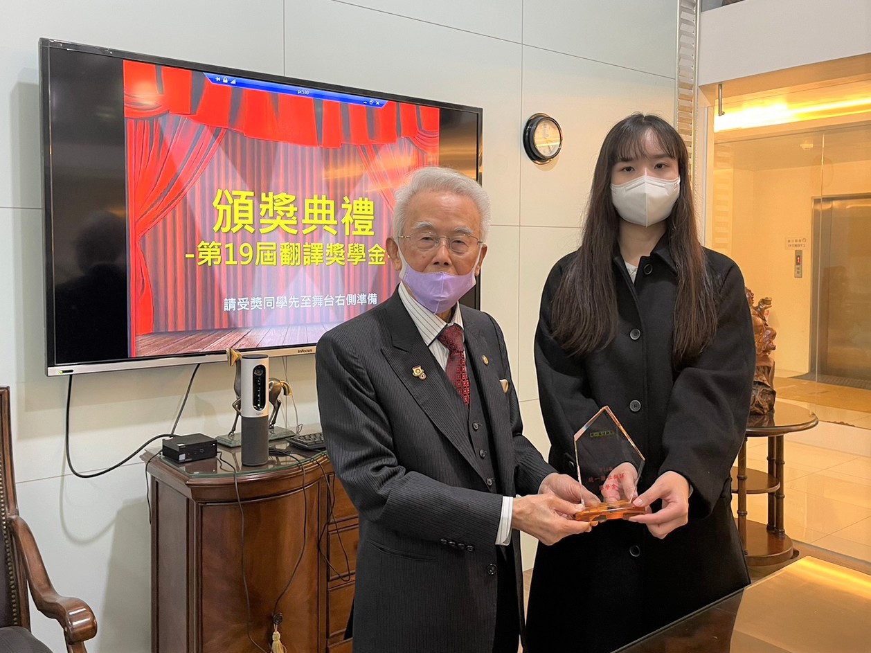 首先特別感謝評審老師們的肯定,能獲得這份獎項真的十分驚訝、意外。因為大學一年級的時候曾經參加過校內的翻譯比賽,可惜當時中譯英、英譯中兩個項目皆未獲獎。這次獲得這份榮譽,讓我感受到了自己的進步,對我是莫大的鼓勵,也在繼續鑽研學習上為我帶來極大的信心。